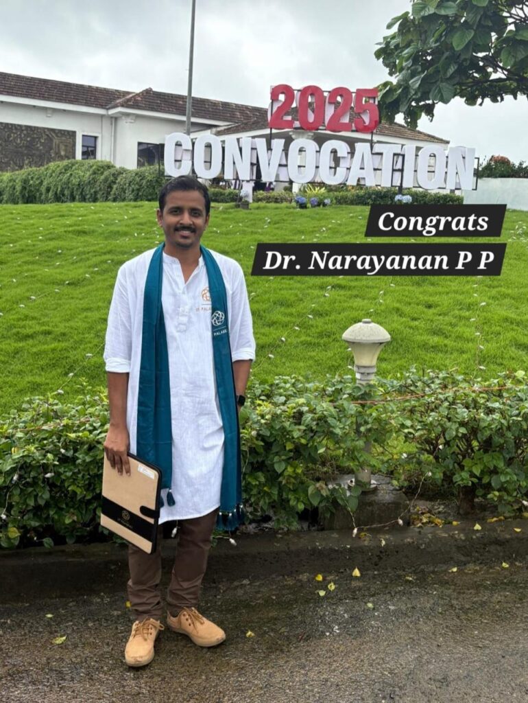 Cheering our alumnus Dr Narayanan P P on his Ph.D. achievement,a testament to his dedication and research excellence
