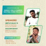 The orientation program for the Energy Cell flagship initiatives of KTU NSS was successfully conducted on 21 September 2025. The event aimed to familiarize newly enrolled NSS volunteers with the objectives, activities, and responsibilities associated with the Energy Cell’s flagship programs.