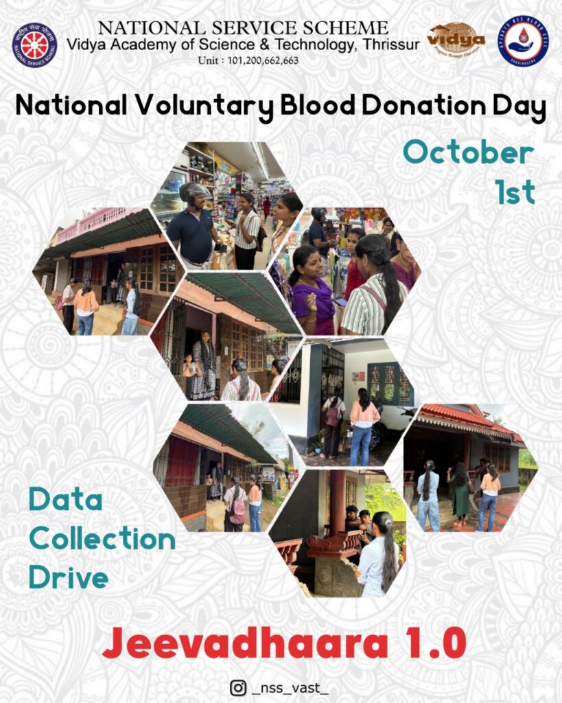 In observance of National Voluntary Blood Donation Day on 01 October 2025, the NSS Unit of Vidya organized a Blood Donors Registration Campaign at Velur Panchayath. The initiative was aimed at promoting awareness on the significance of voluntary blood donation and encouraging community members to register as potential donors for this life-saving cause