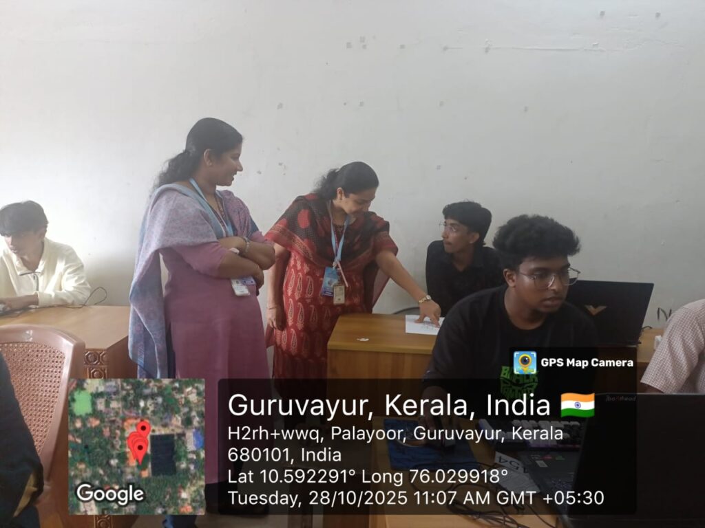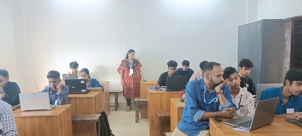 They served as evaluators for the “Home Plan Design” competition, assessing participants’ work based on creativity, technical accuracy, and presentation skills. During the event, they engaged in productive discussions with Mr. Arun P. Sankar (Thrissur District Career Guidance Coordinator, VHSE)), and Ms. Naveena (Assistant Director, VHSE), regarding potential collaborations to strengthen links between VHSE institutions and engineering colleges.