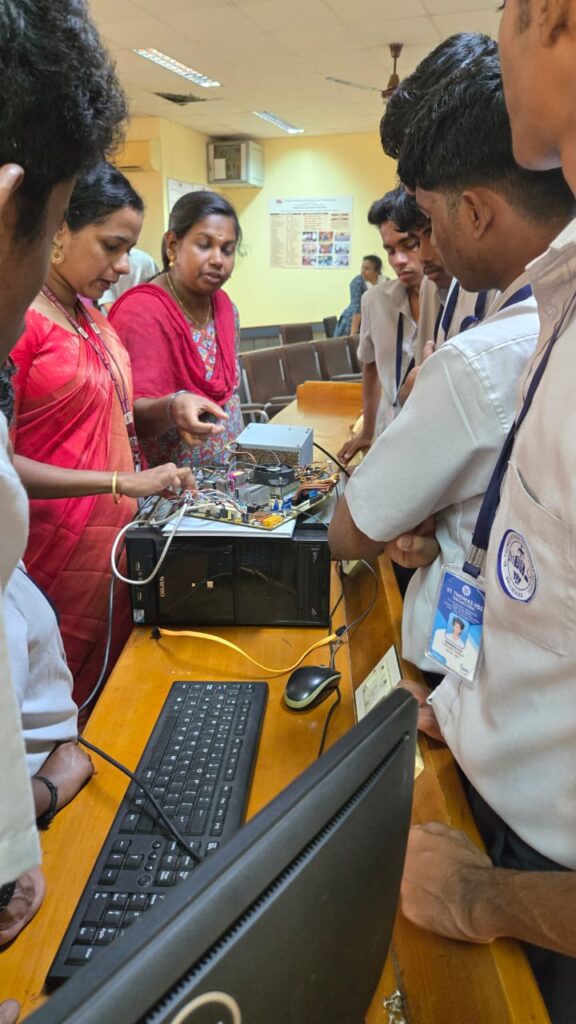 Following the theory session, students were grouped for a practical hands-on activity. Under instructor guidance, they identified components, learned their functions, and assembled a computer step by step. This included installing the motherboard, connecting the processor and RAM, mounting storage devices, linking power connections, and completing necessary wiring. Students also gained exposure to BIOS settings, safety practices, troubleshooting common issues, and proper handling of sensitive electronic components.