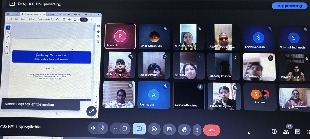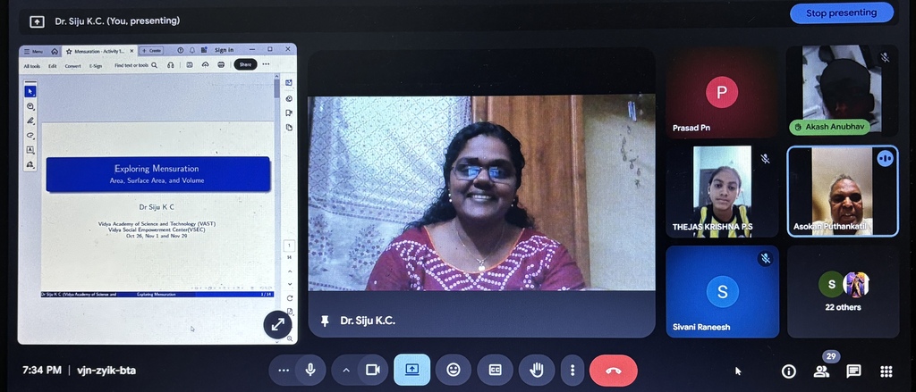 | The Editorial Team of News & Events joins the entire Vidya fraternity in extending heartiest congratulations to Dr. Siju on the engaging virtual session that deepens students’ understanding of mensuration and fosters practical application, spatial reasoning, and hands-on learning !!! |