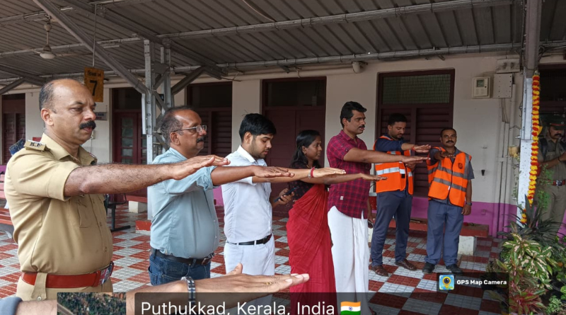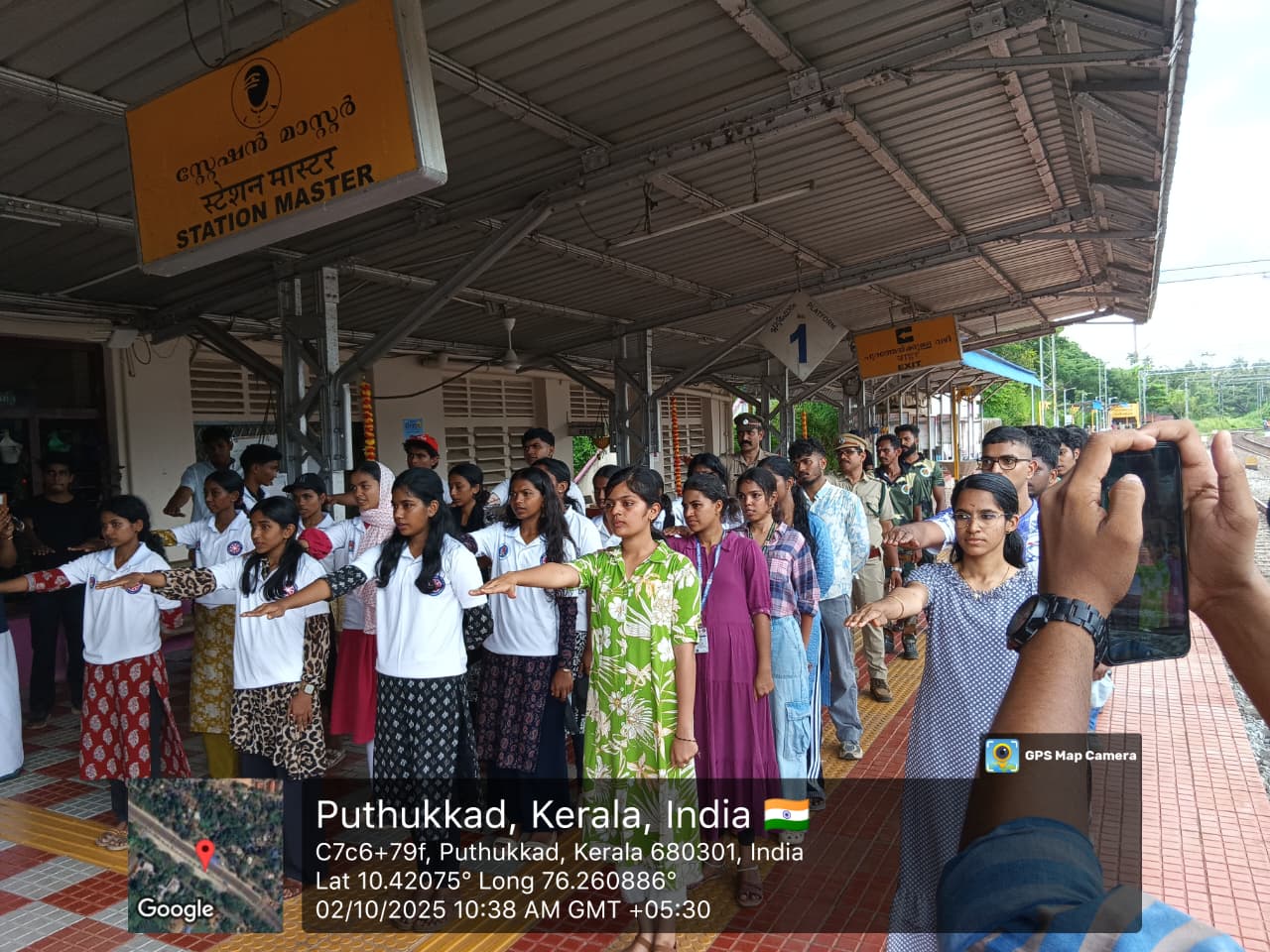 The pledge was administered by Mr Banty (Station Master, Pudukad) who led all participants in committing to maintain cleanliness and contribute to building a cleaner and healthier nation. The ceremony was conducted in the presence of several dignitaries, including  Mr V. K. Renjith (Peechi Wildlife Warden),  Mr Paul Maneesh (TI TCR),  Ms. K. K. Ananthalakshmi (Station Superintendent),Mr K. K. Sajeevan (Ward Member), Prof. Arun K. L (Passenger Association Secretary) and Sri Mohammed Raphy (Assistant Warden,Chimmony Wildlife Sanctuary).NSS volunteers from Vidya Academy of Science and Technology and Christ College, Irinjalakuda, along with forest officials and local residents, actively participated, reflecting a strong collective commitment to environmental cleanliness and conservation.