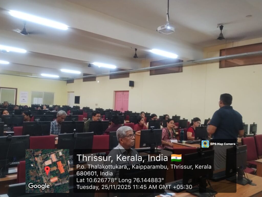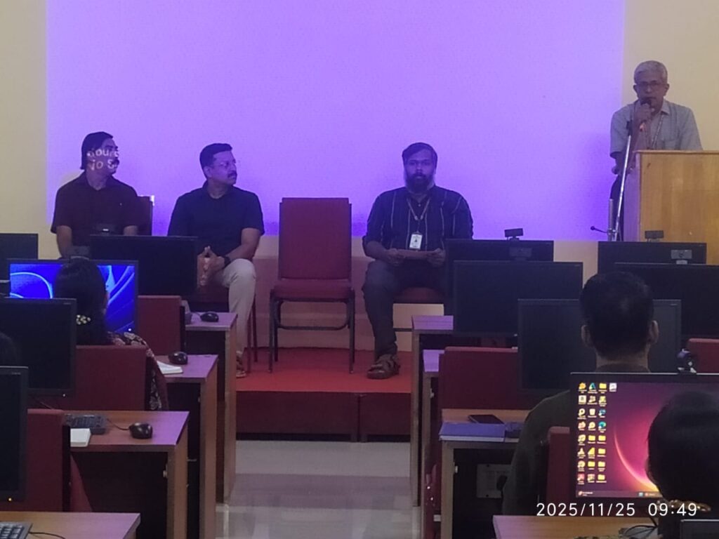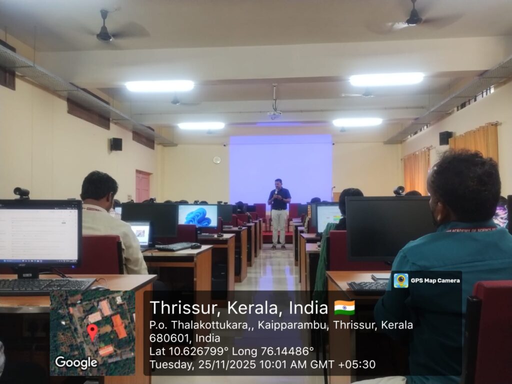 Dr. Prasanth M (Librarian, Dept of Commerce & Management Studies, University of Calicut) served as the resource person. Dr.Prasanth provided a comprehensive overview of scholarly publishing platforms and explored various journal metrics such as Impact Factor, CiteScore, SJR, and h-index to help faculty evaluate journals effectively. Participants were introduced to indexing databases including Scopus, Web of Science, and UGC-CARE, and learned techniques for selecting suitable journals for publication. The session also highlighted the use of AI tools for academic writing, citation management, and improving manuscript quality, complemented by hands-on demonstrations of specific tools and platforms to provide practical experience.