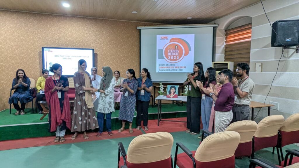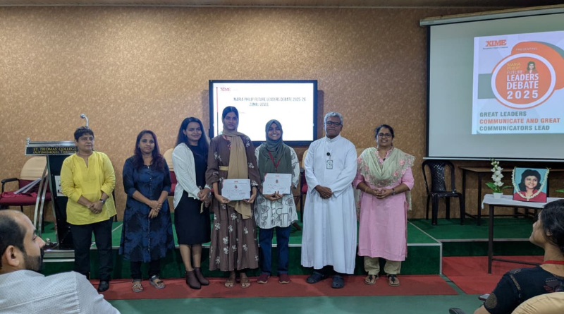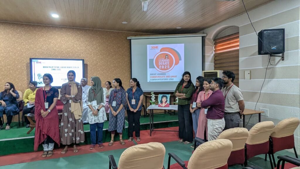 | The Maria Philip Future Leaders’ Debate 2025 was held on 25 November 2025 at St. Thomas College (Autonomous), Thrissur, and was organized by Xavier’s Institute of Management and Entrepreneurship (XIME). The event witnessed participation from 13 teams, with Vidya Academy of Science and Technology being represented by V A Nahala Abdul Latheef (S3, ECE Dept) and Aysha Shafeek M M (S3, CSE Dept) The competition followed a two-member team format, with one speaker arguing in favor of the motion and the other opposing it. |