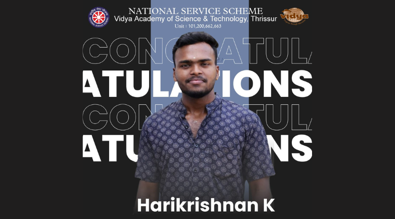 | The Editorial Team of News & Events joins the entire Vidya fraternity in extending hearty congratulations to Harikrishnan on this prestigious achievement that reflects his dedication, discipline, and active involvement in NSS activities and wishing him all the best in making this a memorable event filled with patriotism and pride !!! |