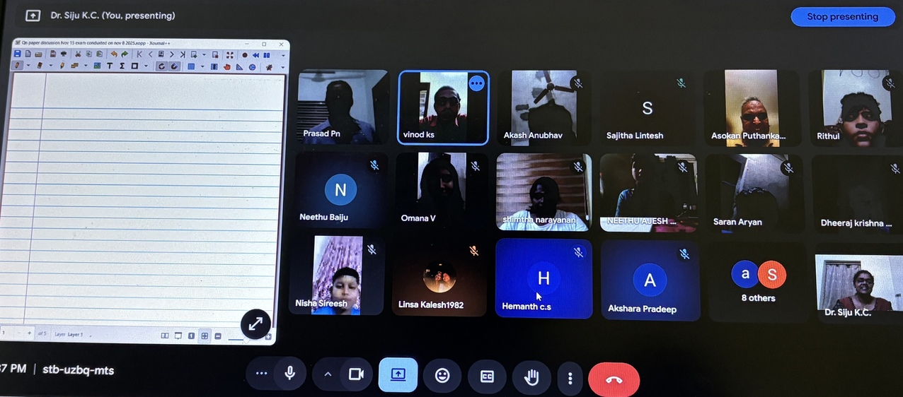 As part of Kovilakath Foundation’s Academic Excellence Programme, Dr. Siju K. C (Head, VSEC and Asso. Prof, AS Dept)  conducted a detailed question paper discussion session following the Continuous Evaluation Examination in Mathematics held on 08 November 2025.