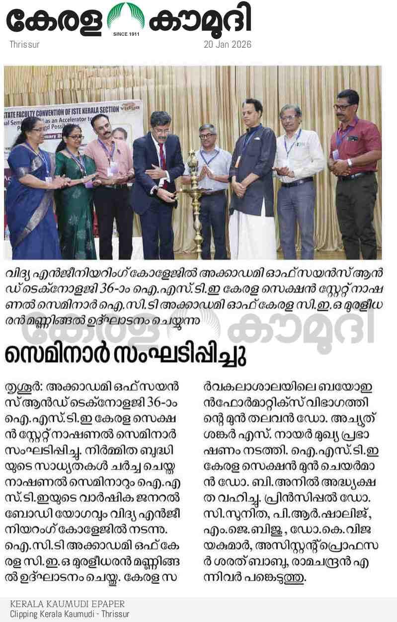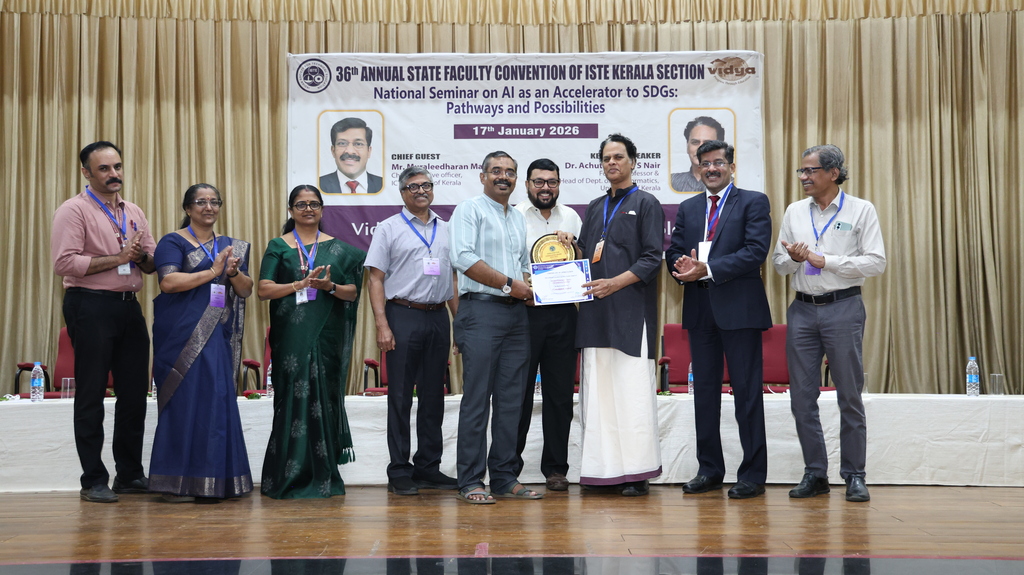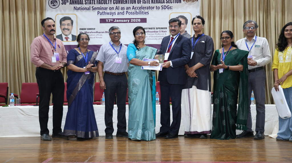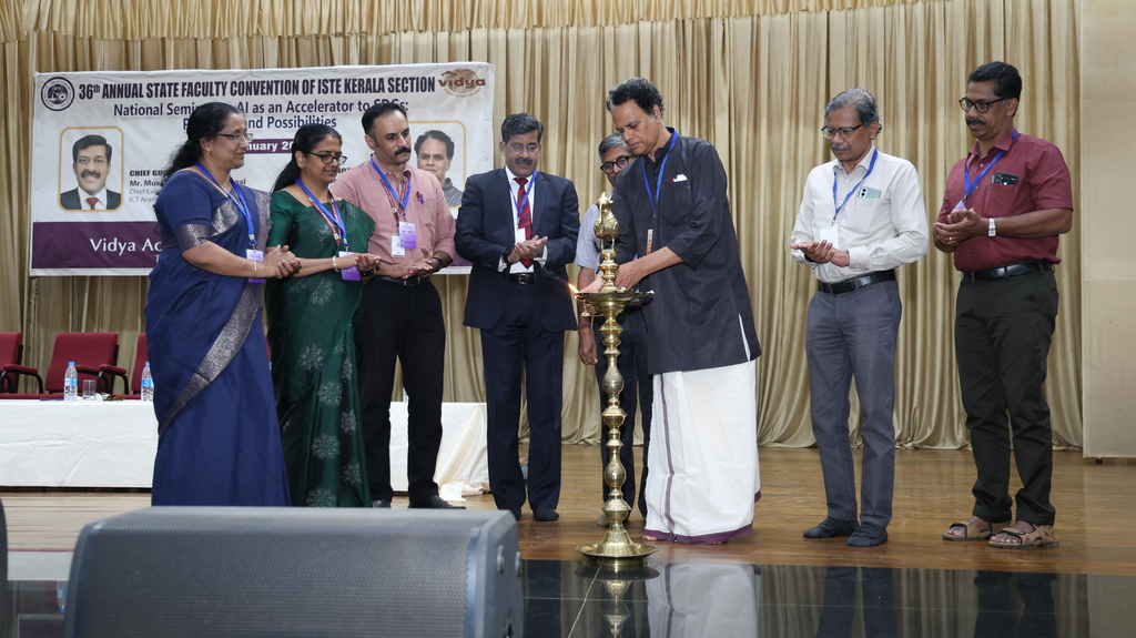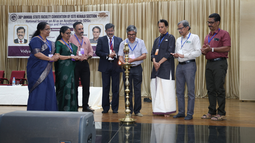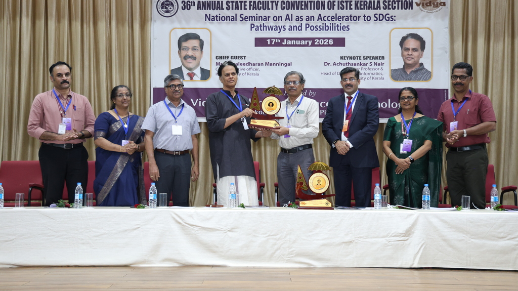 | Indian Society for Technical Education (ISTE) brought together eminent academicians, professionals, and researchers every year with its prestigious ISTE Kerala Section State Convention & National Seminar every year. Vidya Academy of Science & Technology has the privilege to host 36th ISTE Kerala Section State Convention and National Seminar on ‘AI as an Accelerator to SDGs: Pathways and Possibilities’ on 17 January 2026 to discuss emerging trends, research findings and practical applications of AI in supporting sustainable development. The event featured keynote addresses, technical paper presentations, and deliberations aimed at enhancing academic excellence and encouraging AI-driven solutions for societal benefit |