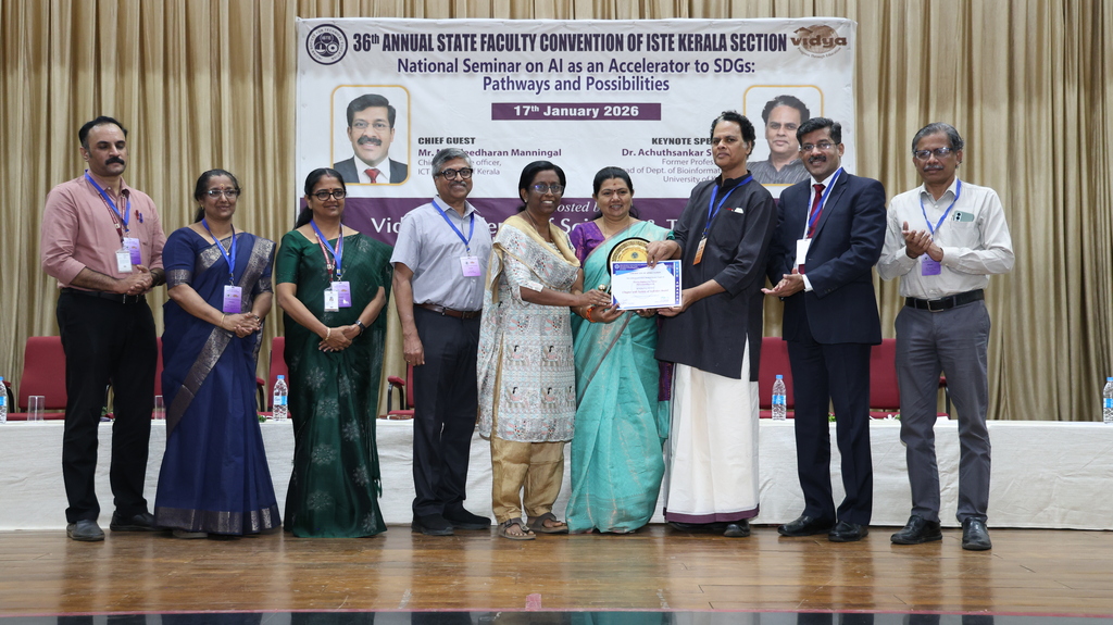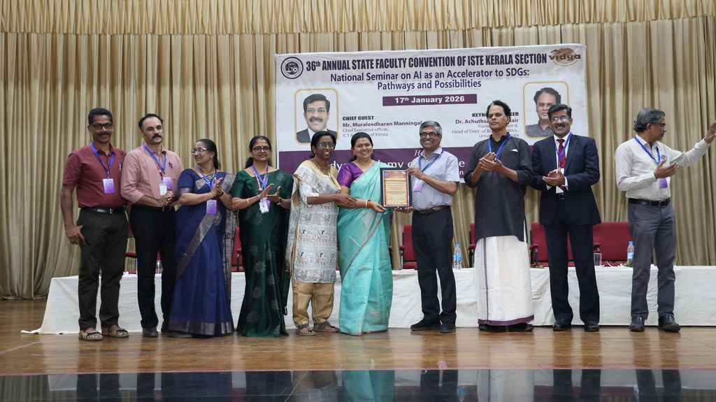 The Editorial Team of News & Events joins the entire Vidya fraternity in extending hearty congratulation to Dr. Shalij, Dr Sunitha, Mr Sarath and all staff members on this laudable feat of successfully conducting ISTE Kerala Section State Convention that promotes knowledge sharing, interdisciplinary research, innovation, and collaboration in emerging AI technologies aligned with sustainable development !!!