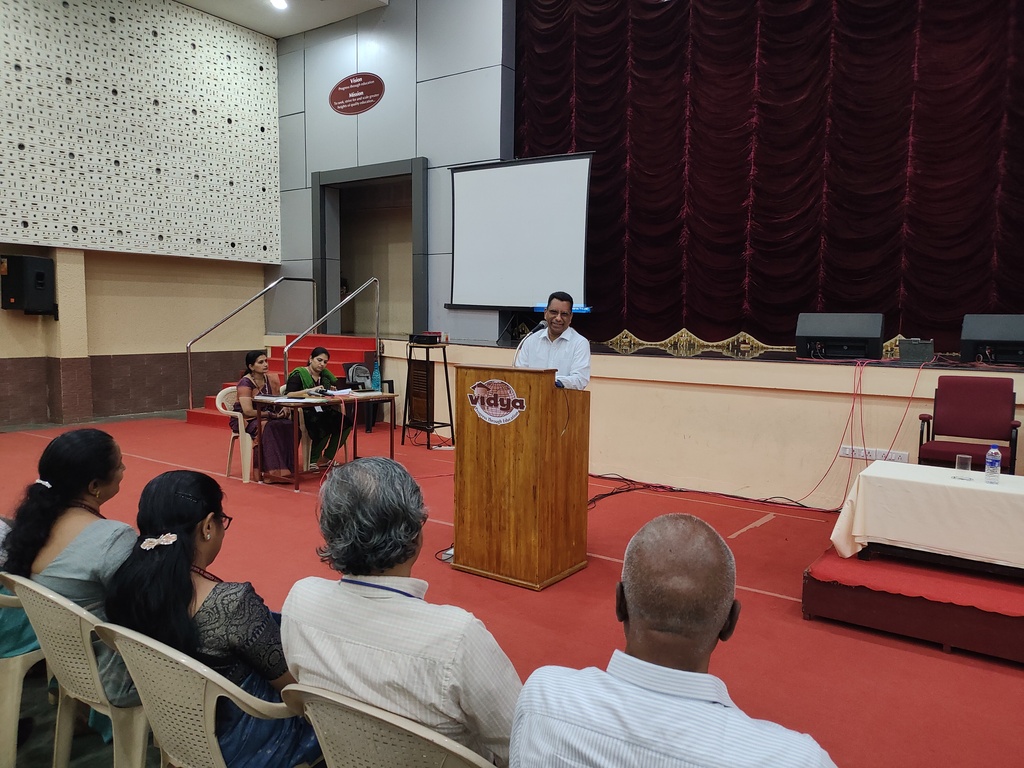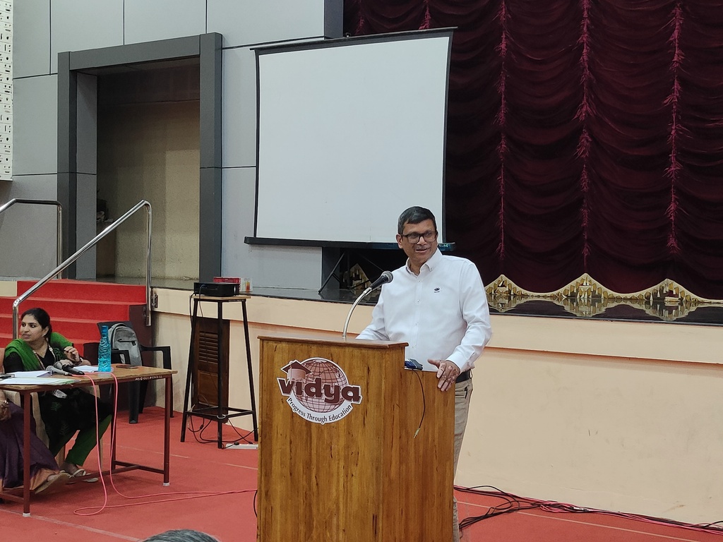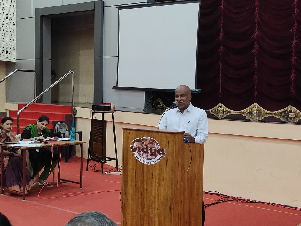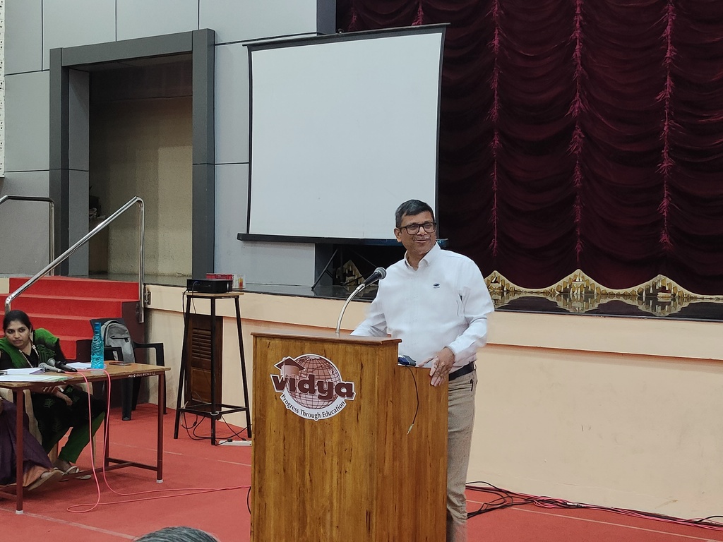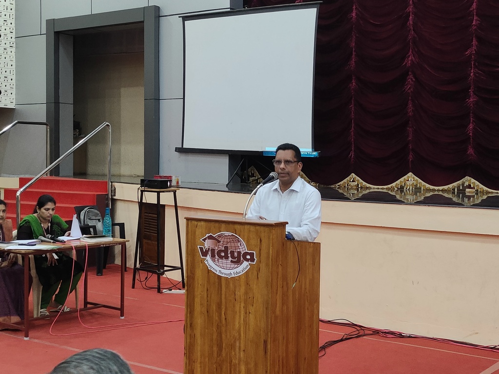 | Mr. Gireesh Kumar Malattiri (Chairman, VICT) highlighted that Vidya’s success is driven by a collective effort, where individual dedication supports the institution’s overarching Vidya Vision. He presented a different phase strategy for development : the Institution Inception and Growth Phase, dedicated to building strong foundations, setting up effective governance, and launching key academic initiatives; the Stabilization and Expansion Phase, focused on strengthening operational efficiency, enhancing academic standards, upgrading infrastructure, and broadening the institution’s influence; and the Sustainable Growth Phase, aimed at achieving long-term excellence through financial stability, innovative programs, research advancement, and global partnerships. This phased roadmap underscores a vision for a resilient, future-ready institution that fosters talent, drives innovation, and upholds leadership in education. |