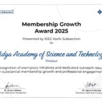 It is with immense pride and pleasure that the Editorial Team of News & Events shares that  IEEE Student Branch (SB) VAST Chapter has been honored with the prestigious Membership Growth Award 2025, presented by the IEEE Kochi Subsection, in recognition of its outstanding initiatives and dedicated outreach efforts that led to significant membership growth during the year 2025.
