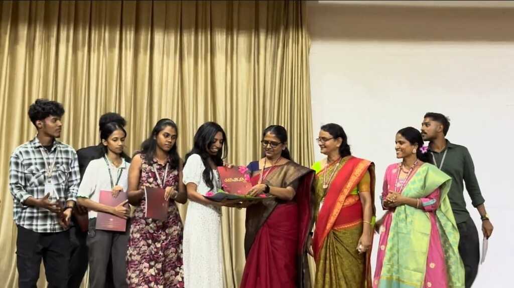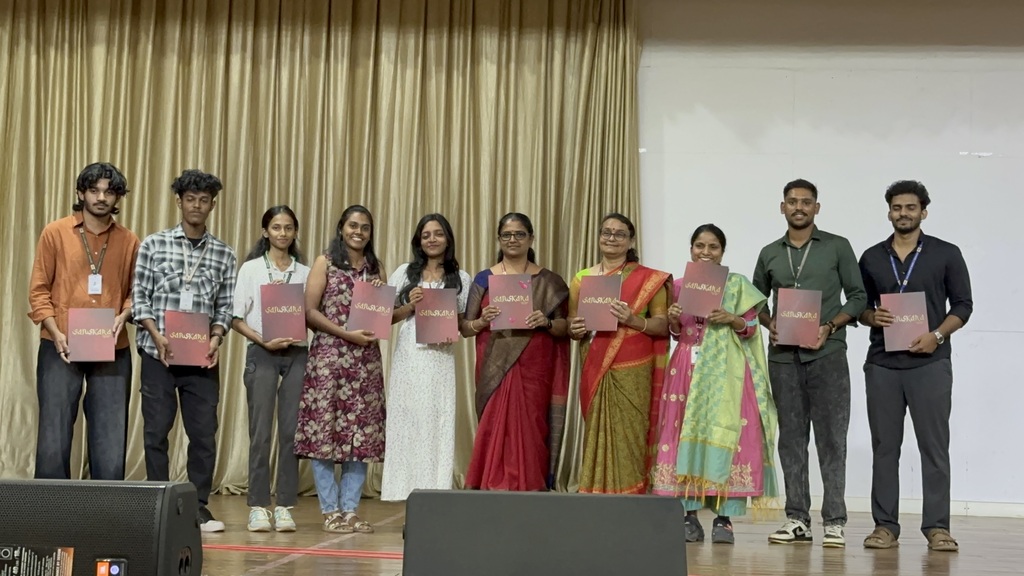 ‘Vidh Vangmay’ hosted the College Magazine Release Ceremony on 21 January 2026,marking the unveiling of the college magazine “Sanskara” for the academic year 2024–25.The occasion celebrated not just the release of  Sanskara, but also the shared passion and collaborative spirit of the student editorial team.The event opened with a warm welcome, followed by the magazine unveiling by Dr. Sunitha C (Principal). In a gesture rich with meaning, the magazine was cradled in a fresh plantain leaf adorned with rose petals.As the Principal gently lifted the magazine from the leaf, the moment stood as a powerful symbol of sustainability, tradition and mindful creation.Certificates of appreciation were awarded to the Editorial Board student members and to Adidyan (S8, CSE Dept) for his remarkable contributions beyond his official role.