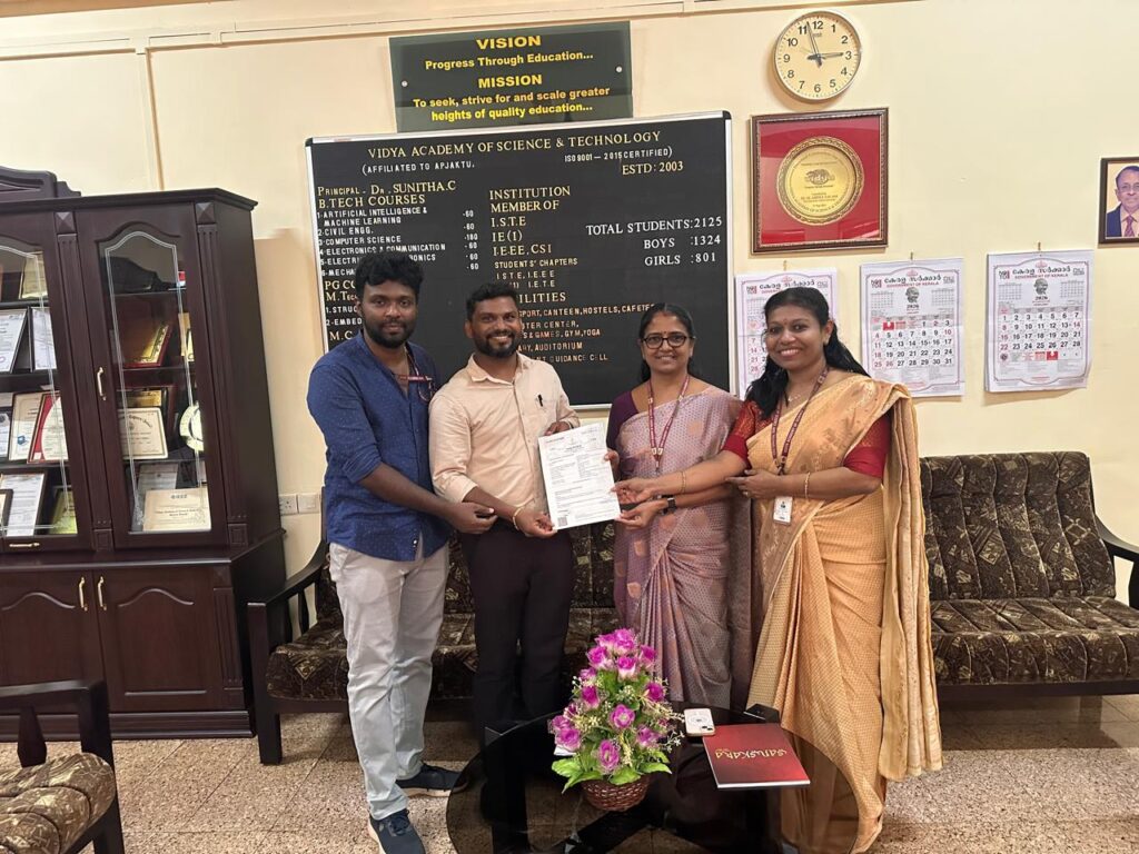 The Editorial Team of News & Events joins the entire Vidya fraternity in extending hearty congratulations to Farzeena,Nandana,Jithu and Surya on this notable accomplishment that  refines their competencies, boost their confidence and shape successful career journeys !!!