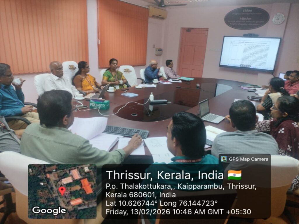 The meeting was presided over by Dr. Shalij P. R. (Director – Academics). Dr. Sunitha C. (Principal), Mr. Suresh Lal (Executive Director, VICT), Mr Biju P. V. (Asst. Management Representative, Asso Prof, ME Dept) and the heads of all academic and non-academic departments were present and actively participated in the discussions, contributing insights and suggestions to strengthen the institution’s Quality Management System.