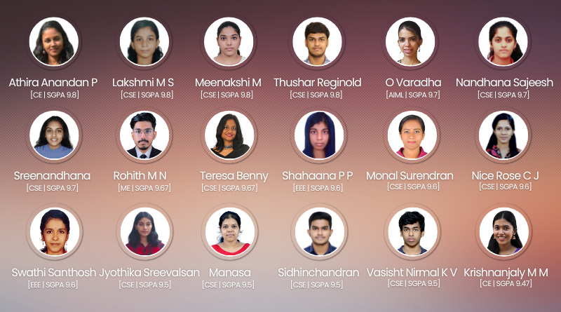 | 11 | Sreenandhana C S | 9.7 | CSE | 37 | Navaneeth Krishna | 9.2 | CSE |