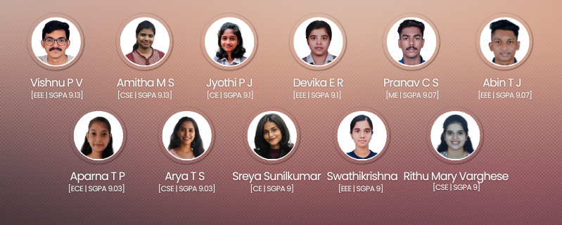 | 18 | Jyothika Sreevalsan | 9.5 | CSE | 44 | Devika E R | 9.1 | EEE |