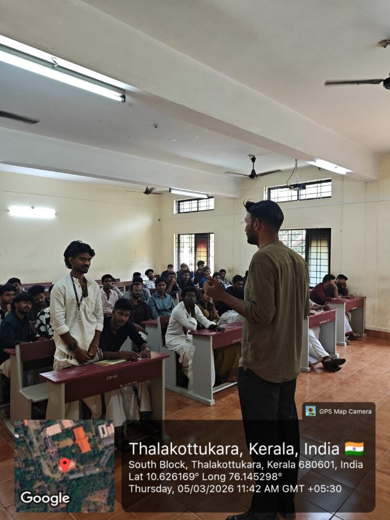 A technical session on the “Basics of Intellectual Property Rights (IPR) and Patents” was conducted on 05 March 2026 for the final year Mechanical Engineering students of Vidya . The session was handled by Mr. Jinto A.J (Adjunct Faculty,ME Dept)