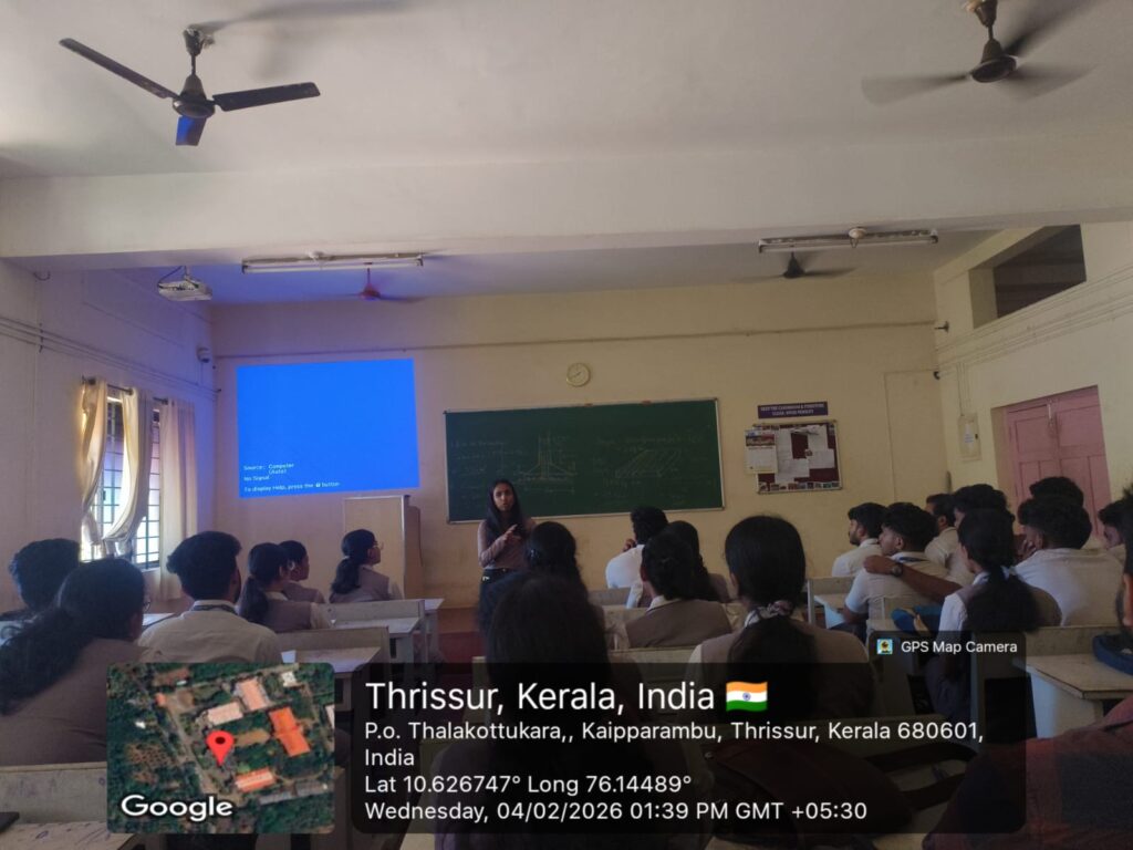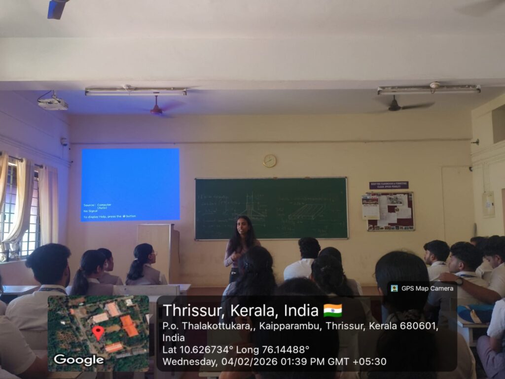 An alumni interaction session was conducted for the students of f Civil Engineering on 04 February 2026 with Ms. Adhithya M S (Estimation Engineer,Al Nasr Contracting Company LLC, Abu Dhabi,2020- 24 batch,CE Dept).