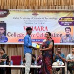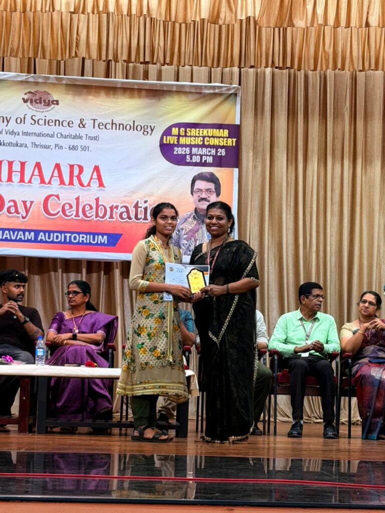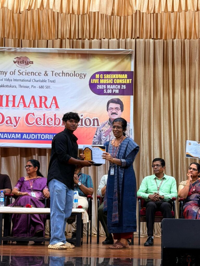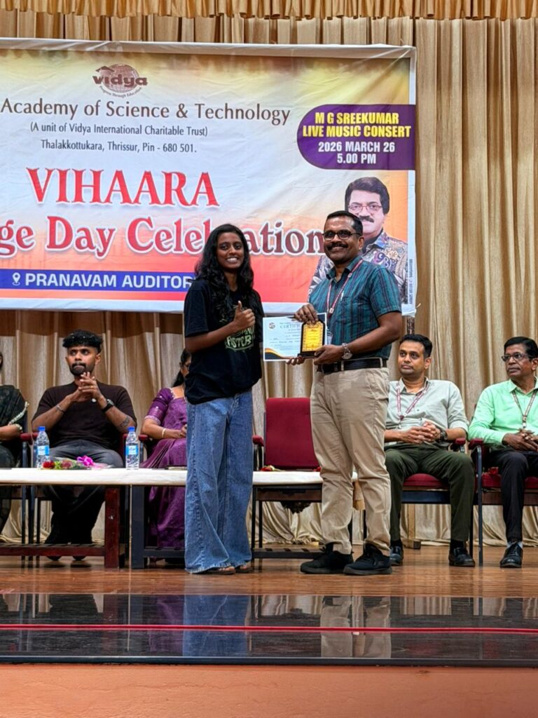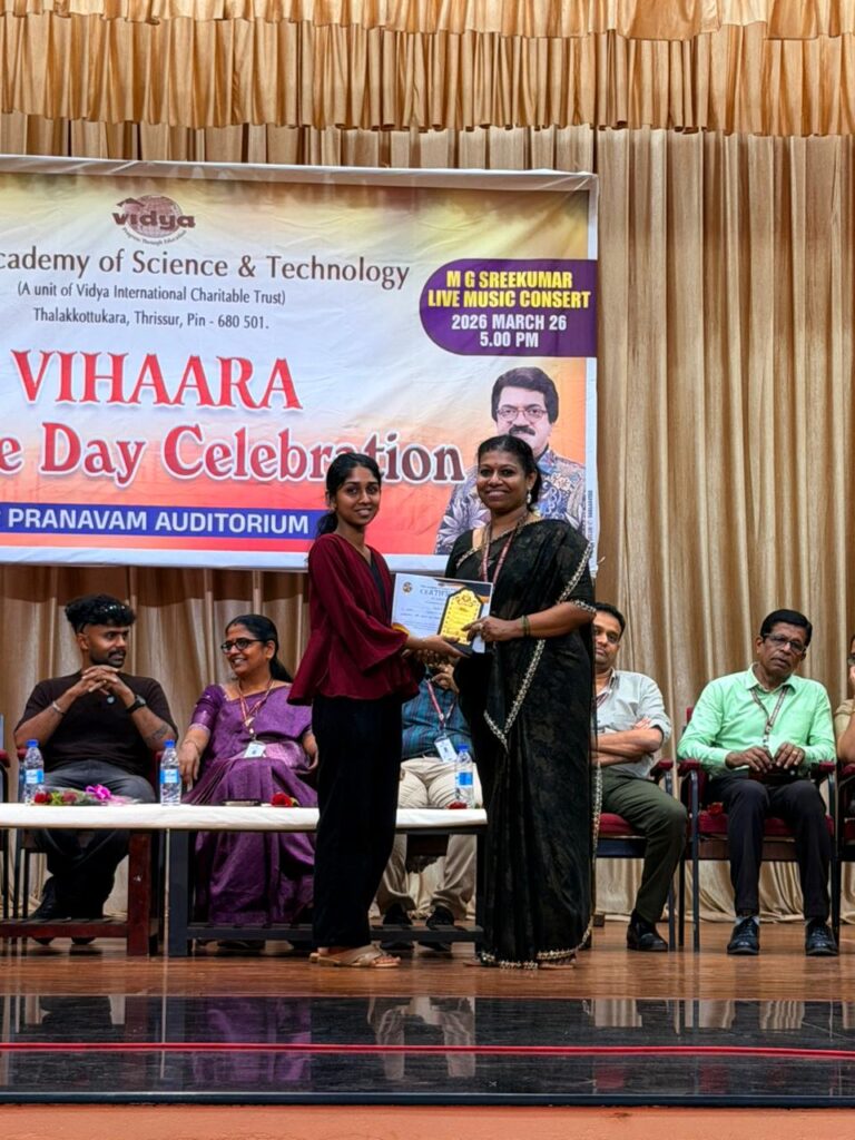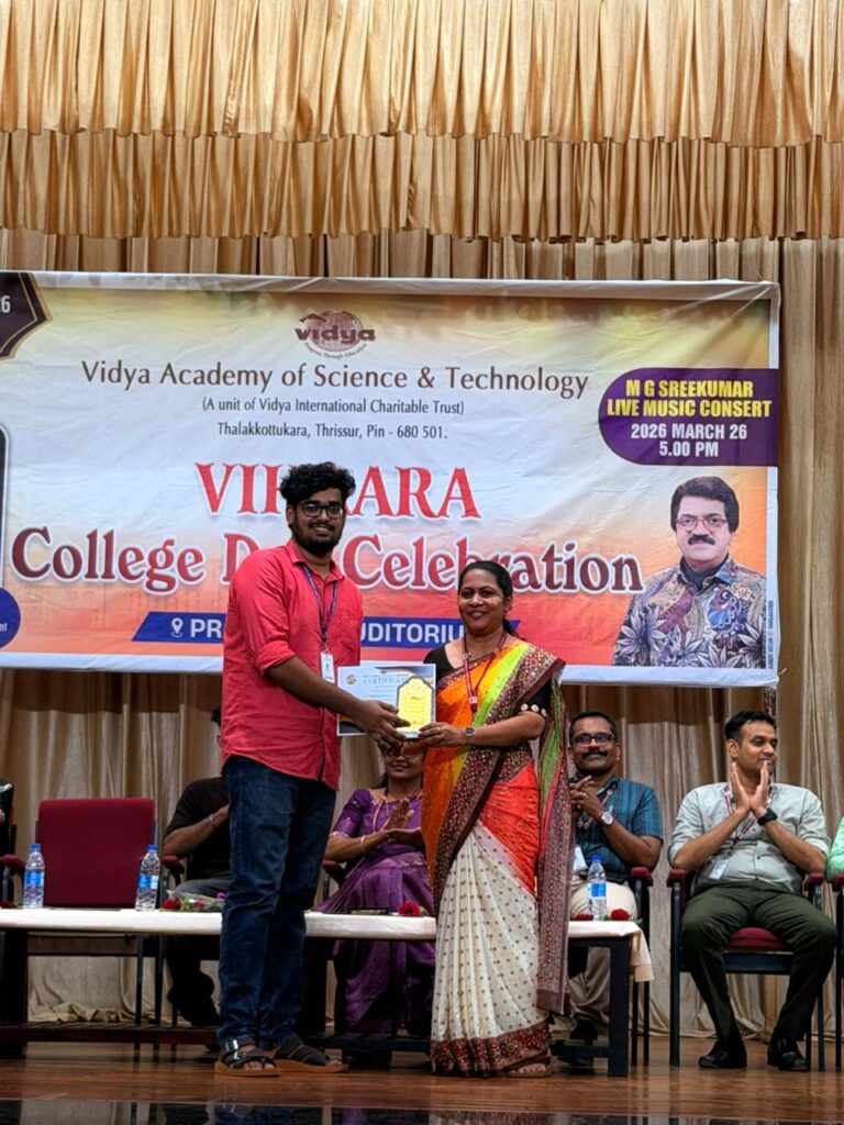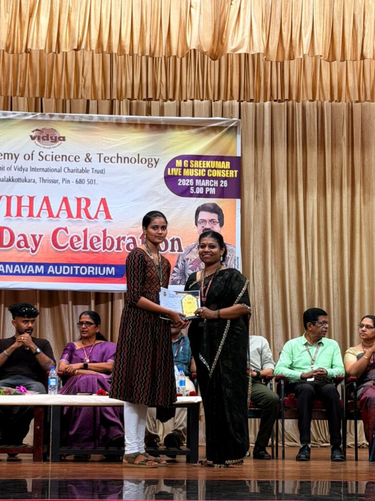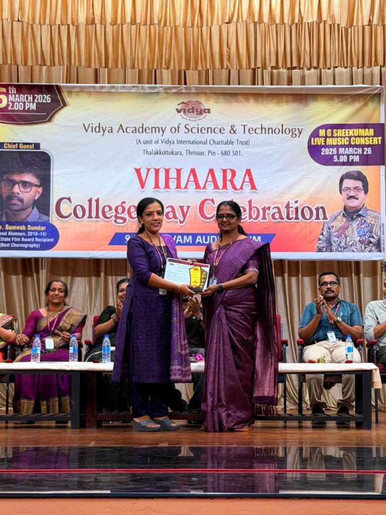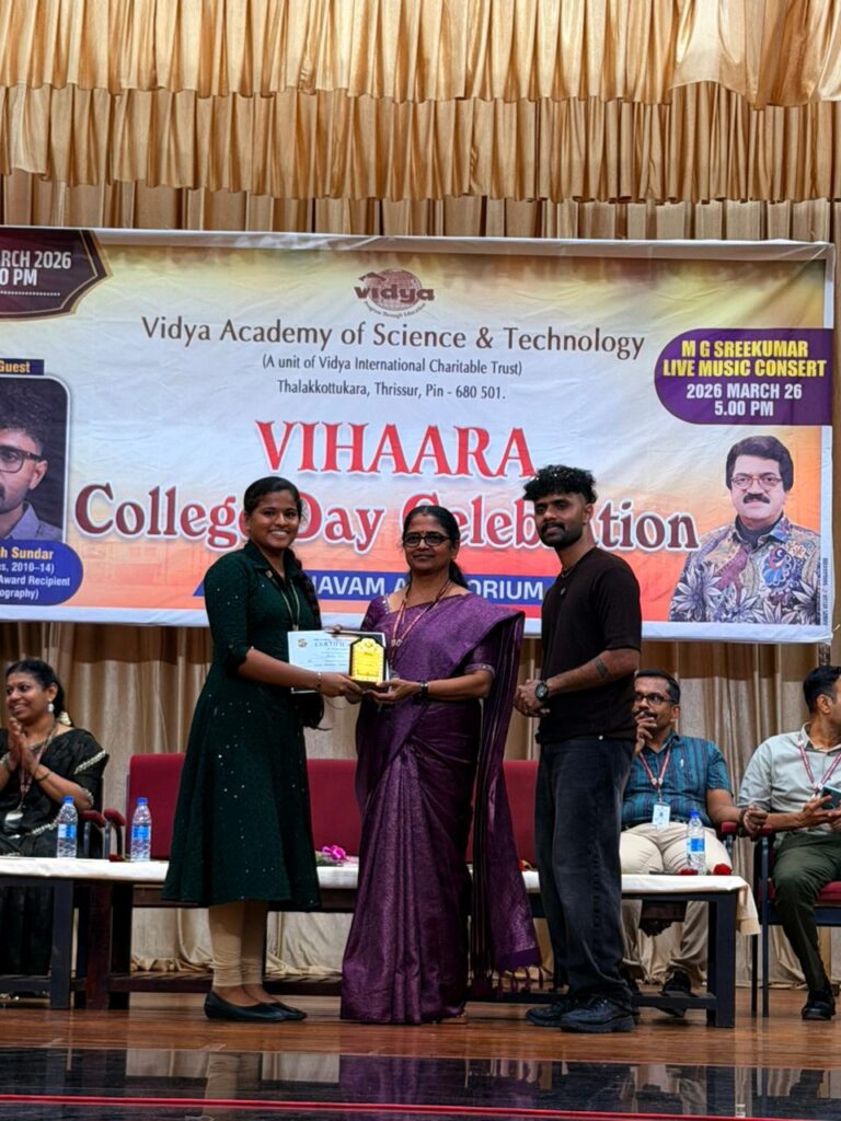 The College Day celebration, VIHAARA 2026, at Vidya Academy of Science and Technology on 26 March 2026 unfolded as a spectacular display of talent and unity. Conducted in two phases, the event created a dynamic platform where students and faculty came together to celebrate creativity, culture, and togetherness in an energetic and festive environment.The festivities commenced with impressive performances by students from various departments. The AI & ML Department opened the cultural segment with innovation and energy, followed by the Civil Engineering Department, which demonstrated creativity and delivered a vibrant performance. The Mechanical Engineering Department showcased precision and talent, while the Electrical & Electronics Engineering Department concluded the first set with flair and enthusiasm