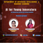 With the aim of introducing high school students to the basic concepts of Artificial Intelligence and its real-world applications, an interactive session on the topic “AI for Young Innovators” was organized at NSSVHSS Mundathicode, Thrissur, on 03 March 2026. The session was conducted by the Department of Artificial Intelligence and Machine Learning. Ms. Reshmi Ravindran (Asst Prof, AIML Dept) and Ms. Bianka Thomas (Asst Prof, AIML Dept) represented the department and served as the Resource Persons for the event.