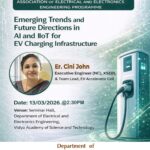 The Association of Electrical and Electronics Engineering (AEEE) of the Department of Electrical and Electronics Engineering, Vidya Academy of Science and Technology (VAST), Thrissur, organized a technical talk titled “Emerging Trends and Future Directions in AI and IIoT for EV Charging Infrastructure” on 13 March 2026 at 2:30 PM in the Seminar Hall of the EEE Department.