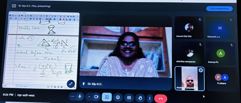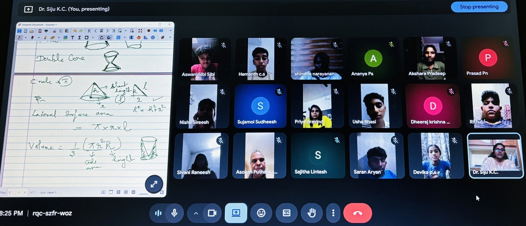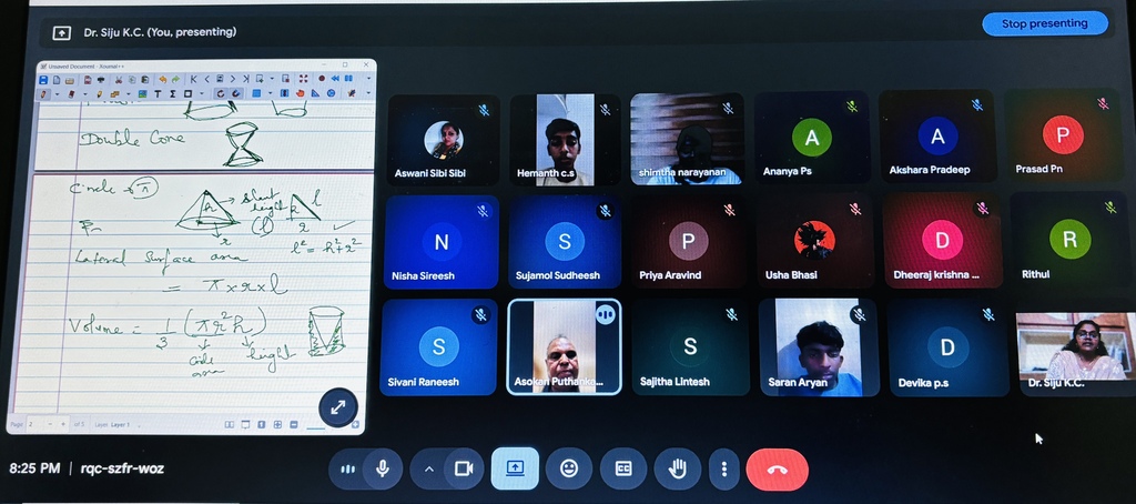 Dr. Siju K. C (Head – VSEC and Asso. Prof, AS Dept) conducted an academic enrichment session titled “Exploring Mensuration – Part C: Area, Surface Area, and Volume of Cone” on 03 January 2026. The session aimed at strengthening students’ conceptual understanding of mensuration.