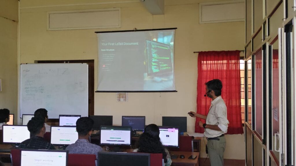 The morning session was led by Mr. Arun Xavier (Asst Prof – Sr Grade,EEE Dept) He introduced participants to the fundamentals of LaTeX, covering: