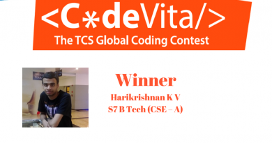 TCS has offered placement to Harikrishnan K V of S7 B Tech (CSE - A) based on his performance in ...